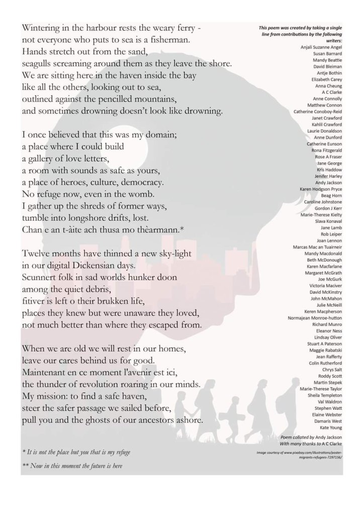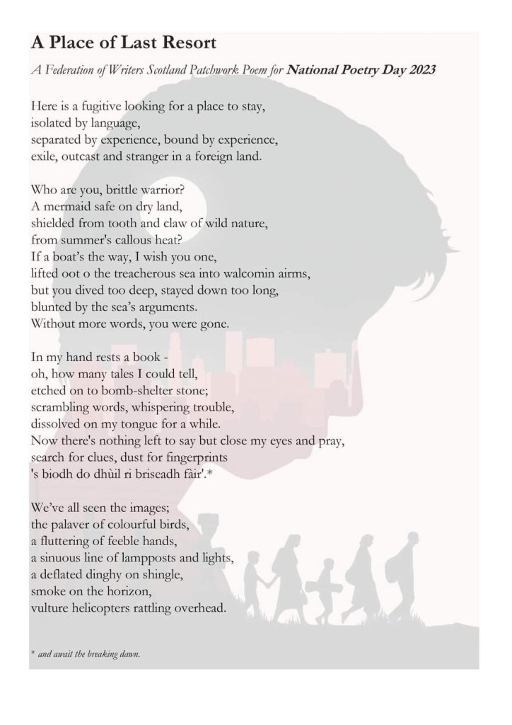 A poem made from lines by 60 poets A Place of Last Resort – National Poetry Day Share this: Share on X (Opens in new window) X Share on Facebook (Opens in new window) Facebook Like Loading... Related Published by Ellie Ness Mother, daughter, friend, teacher. 12 hour work-related days were common. Carving out a new routine. Amateur writer. View all posts by Ellie Ness